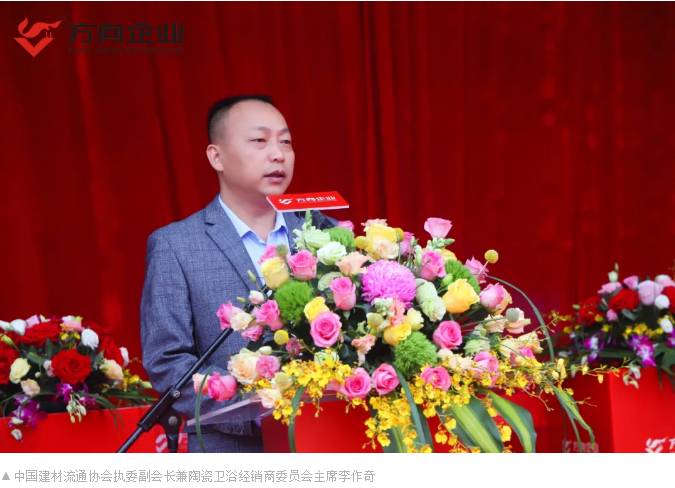 中國(guó)建材流通協(xié)會(huì)執(zhí)委副會(huì)長(zhǎng)兼陶瓷衛(wèi)浴經(jīng)銷(xiāo)商委員會(huì)主席李作奇為本次落成慶典送上了真摯的祝福,并對(duì)公司未來(lái)的發(fā)展寄予厚望,他表示黨十九大報(bào)告提出實(shí)施鄉(xiāng)村振興戰(zhàn)略,這與方向企業(yè)細(xì)分渠道布局相迎合,是發(fā)展乘勢(shì)而上的一大機(jī)遇。希望方向企業(yè)能修煉好內(nèi)功,持續(xù)創(chuàng)新發(fā)展,強(qiáng)化市場(chǎng)布局,為行業(yè)和消費(fèi)者做出更大的貢獻(xiàn)。