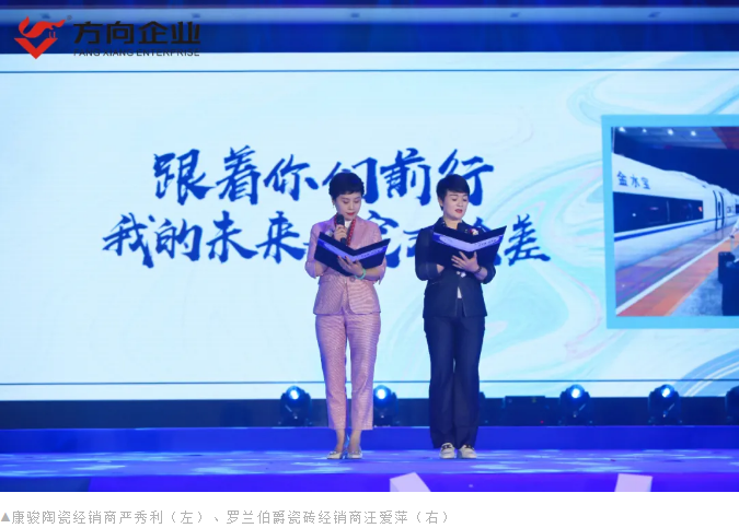 12年商海磨礪,始得勢(shì)能;12年真誠(chéng)以待,方得始終。康駿陶瓷經(jīng)銷(xiāo)商嚴(yán)秀利、羅蘭伯爵瓷磚經(jīng)銷(xiāo)商汪愛(ài)萍共同合作的詩(shī)朗誦《我和方向》深情款款地道出了對(duì)方向企業(yè)的熱愛(ài)和感恩,讓全體方向人為之動(dòng)容。