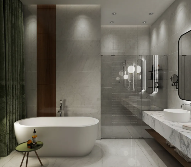 白色的通體大理石瓷磚,除卻了繁冗的裝飾,天然石材得原始質(zhì)感,回歸了自然的優(yōu)雅,空間看似簡單,卻有著無限的表現(xiàn)力,低調(diào)內(nèi)斂、將自然的寫意表達(dá)得淋漓盡致。
