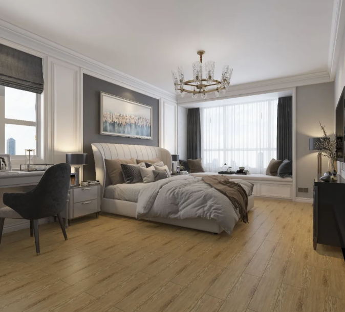 清爽的木紋瓷磚,絲絲縷縷的紋理雕琢著自然的痕跡,逼真得如同置身在原始森林般,予以人寧靜的感受,提升睡眠舒適度。