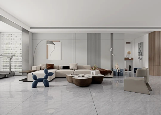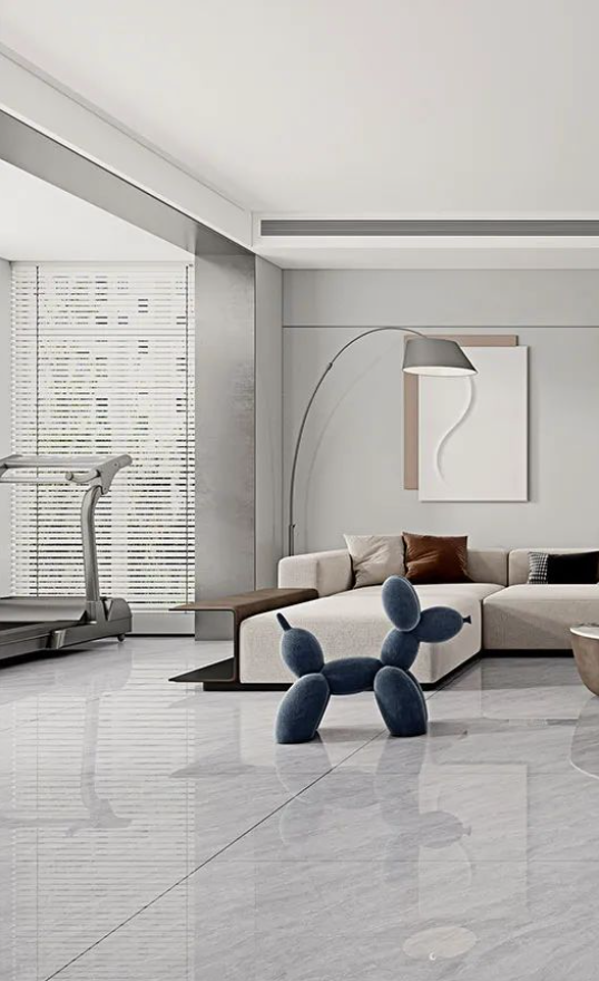 客廳采用無限連紋哈爾施灰作為地面通鋪