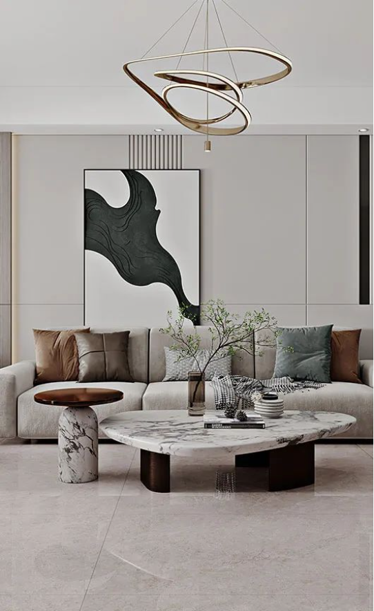 搭配灰色沙發(fā)及藝術(shù)擺件
