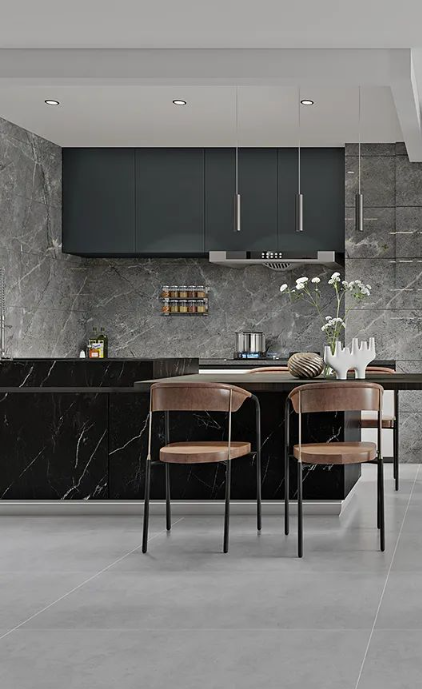 地面以宋素|凡古磚廣寒秋進(jìn)行通鋪,自然純粹的暖灰底紋搭配簡約設(shè)計讓心境升華到另外一個層次,時光賦予的溫柔,彰顯著家居空間的浪漫與溫馨。